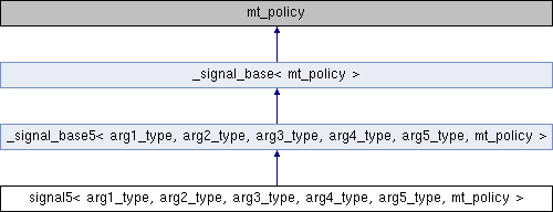Public Types inherited from _signal_base5< arg1_type, arg2_type, arg3_type, arg4_type, arg5_type, mt_policy > | |