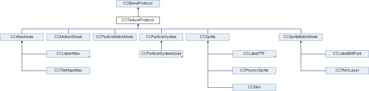 CCBlendProtocol CCAtlasNode CCMotionStreak CCParticleBatchNode CCParticleSystem CCSprite CCSpriteBatchNode CCLabelAtlas CCTileMapAtlas CCParticleSystemQuad CCLabelTTF CCPhysicsSprite CCSkin CCLabelBMFont CCTMXLayer