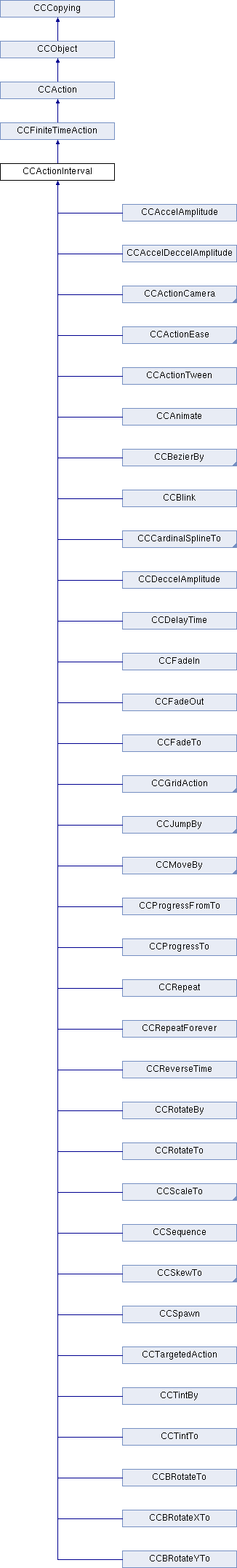 Reimplemented in CCAnimate, CCReverseTime, CCDelayTime, CCTintBy, CCFadeOut, CCFadeIn, CCBlink, CCScaleBy, CCBezierBy, CCEaseBackInOut, CCEaseBackOut, CCJumpBy, CCEaseBackIn, CCEaseBounceInOut, CCSkewBy, CCEaseBounceOut, CCEaseBounceIn, CCEaseBounce, CCMoveBy, CCEaseElasticInOut, CCRotateBy, CCEaseElasticOut, CCEaseCubicActionInOut, CCEaseElasticIn, CCEaseCubicActionOut, CCEaseElastic, CCEaseCubicActionIn, CCSpawn, CCEaseSineInOut, CCEaseCircleActionInOut, CCEaseCircleActionOut, CCEaseSineOut, CCEaseCircleActionIn, CCEaseSineIn, CCRepeatForever, CCEaseQuinticActionInOut, CCEaseExponentialInOut, CCCardinalSplineBy, CCEaseQuinticActionOut, CCEaseExponentialOut, CCDeccelAmplitude, CCEaseQuinticActionIn, CCEaseExponentialIn, CCRepeat, CCEaseQuarticActionInOut, CCEaseInOut, CCAccelAmplitude, CCCardinalSplineTo, CCEaseQuarticActionOut, CCEaseOut, CCAccelDeccelAmplitude, CCSequence, CCEaseQuarticActionIn, CCEaseIn, CCEaseQuadraticActionInOut, CCEaseRateAction, CCEaseQuadraticActionOut, CCProgressFromTo, CCActionTween, CCEaseQuadraticActionIn, CCActionCamera, CCActionEase, CCGridAction, and CCEaseBezierAction.