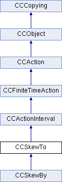 Skews a CCNode object to given angles by modifying it's skewX and skewY attributes. More...