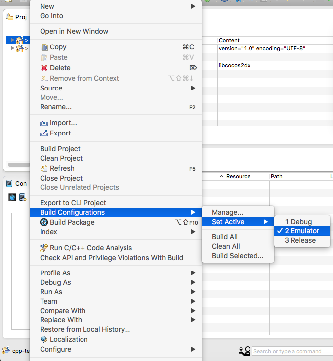 • Now, we can build. First, build libcocos2d-x. Right click on the libcocos2d-x project and select Build Project or press the F10 key.