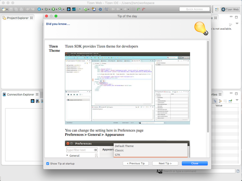 • After completing all steps, you should be able to launc the Tizen IDE 2.4.