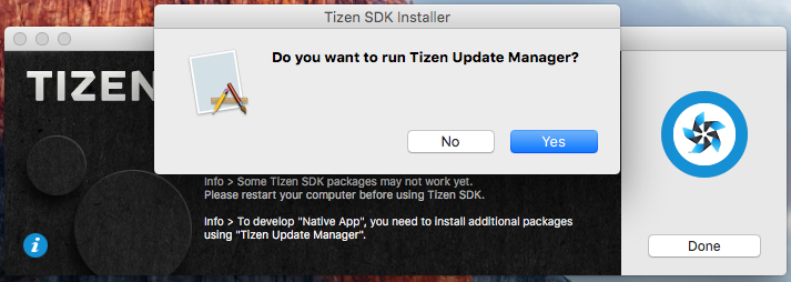 • Double click the Tizen installer that you downloaded and follow the prompts.
