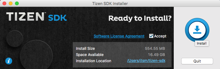 • Install Tizen using the installer you downloaded. If you haven't downloaded it, please refer to prerequisites above.